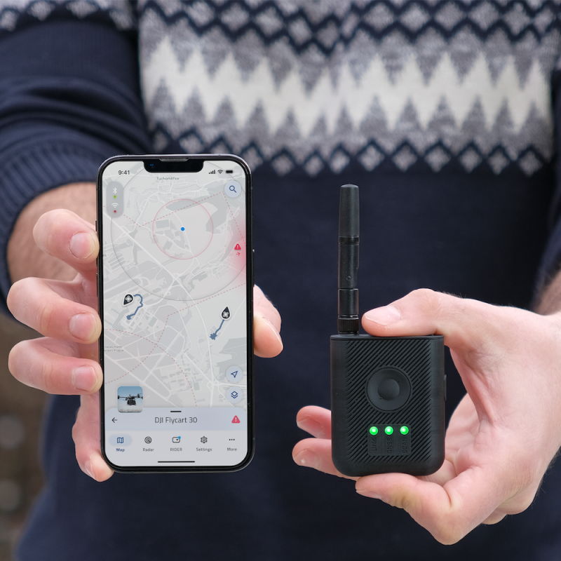 Dronetag RIDER detects all Remote ID-equipped drones compliant with FAA, EASA, and MLIT standards.