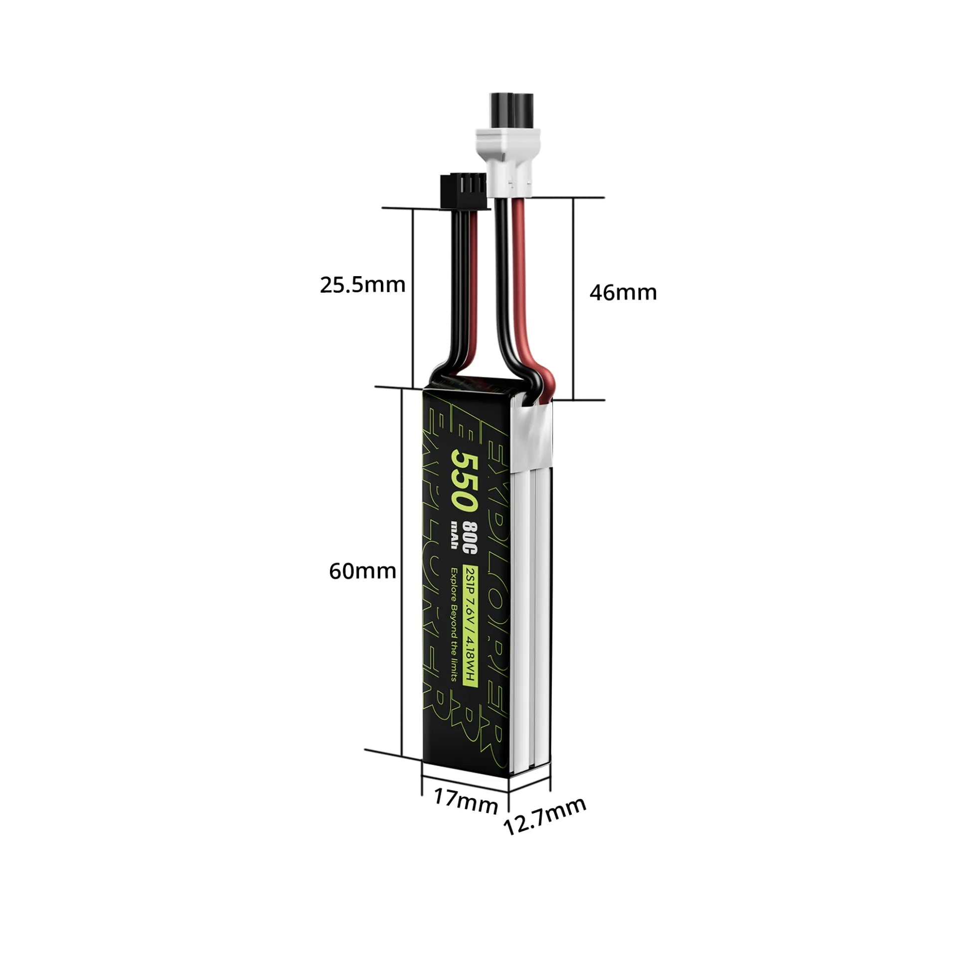 Explorer series batteries are specially designed for long flight time and all are high voltage battery. Using this battery will give you a significant increase in flight time as well as a bit more power over the stock battery. We have upgraded the connector by replacing the original XT30 with the FLYWOO customized XT30UP. The new Flywoo XT30 Pigtail connector cable effectively resolves the issue of plug-in breakage. We have meticulously designed a compatible Amass genuine XT30 sheath that not only prevents cable detachment during use but also ensures a more comfortable and easier plugging and unplugging experience.