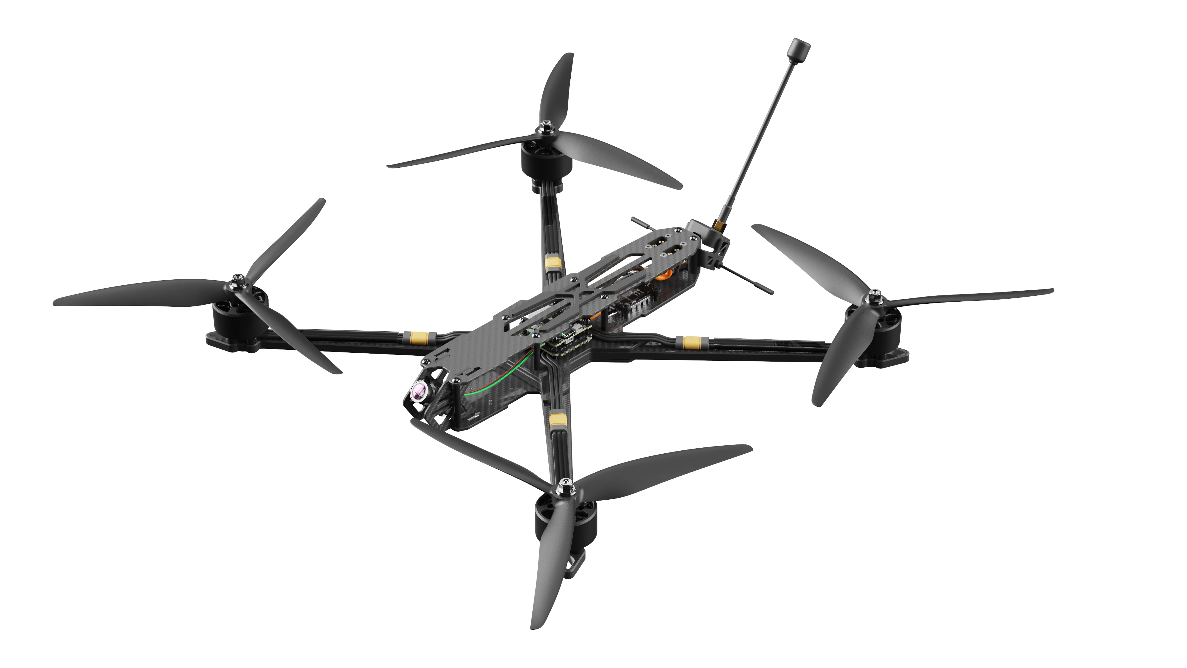 Ya sea para vuelos FPV de largo alcance o aplicaciones industriales, el HS-X10M ofrece un rendimiento y confiabilidad inigualables en una construcción compacta de fibra de carbono.