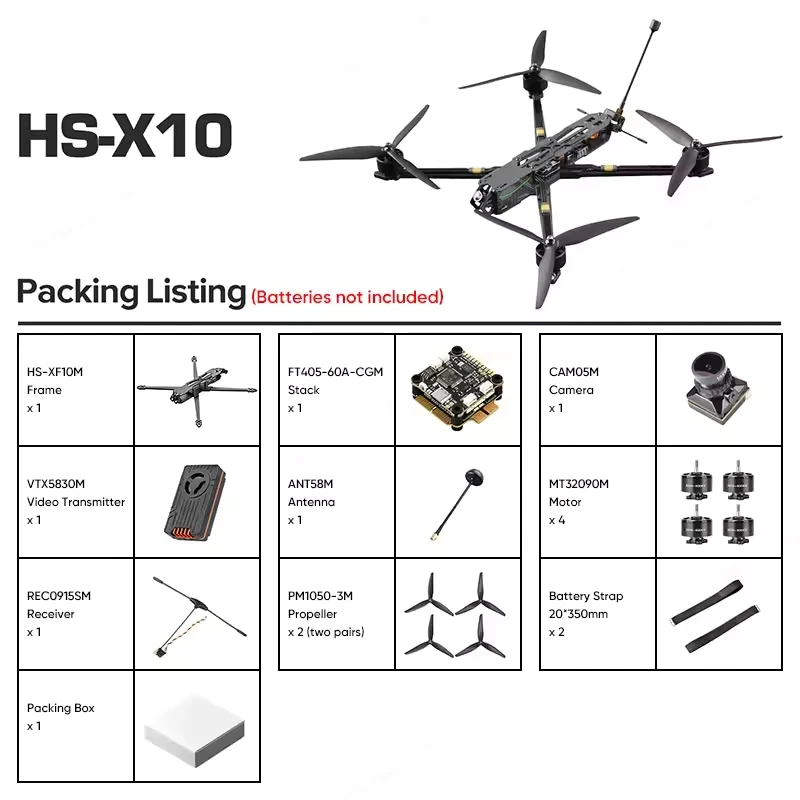 - HS Airforce HS-X10M 10 pulgadas FPV Drone Racing 165 KM/h 30min carga nominal de distancia 3,5 KG HS Airforce HS-X10M 10 pulgadas FPV Drone Racing 165 KM/h 30min carga nominal de distancia 3,5 KG