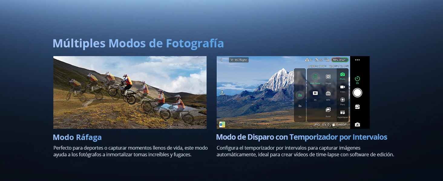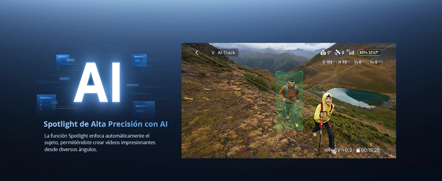 • Batería de 32min y carga rápida : Viaja más y filmas más con la batería de 32 minutos y carga rápida del drone.